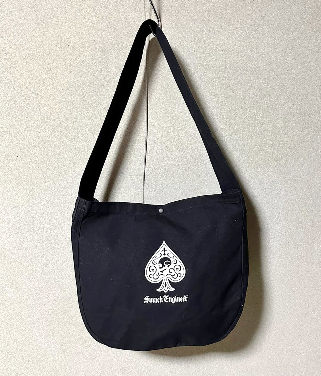 丈夫なキャンバス生地を使用したニュースペーパーバッグ。体にフィットする太めのショルダーストラップは、重い荷物を入れても肩が痛くなりにくく、通勤通学にもおすすめ。スマホがすっぽり入る内ポケット付きの大容量マルチバッグです。